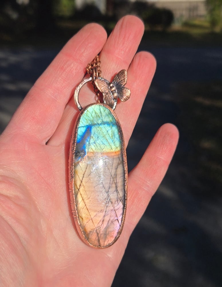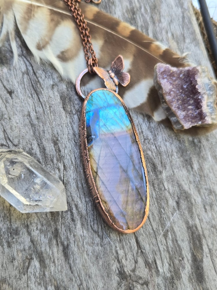 Electroformed extra large labradorite butterfly necklace. This piece comes on an 18-inch copper chain. Please leave me a note at checkout if you would like a different length. Thanks