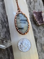 Electroformed green tourmaline in quartz necklace. This piece comes on an 18-inch copper chain. Please leave me a note at checkout if you would like a different length. Thanks
