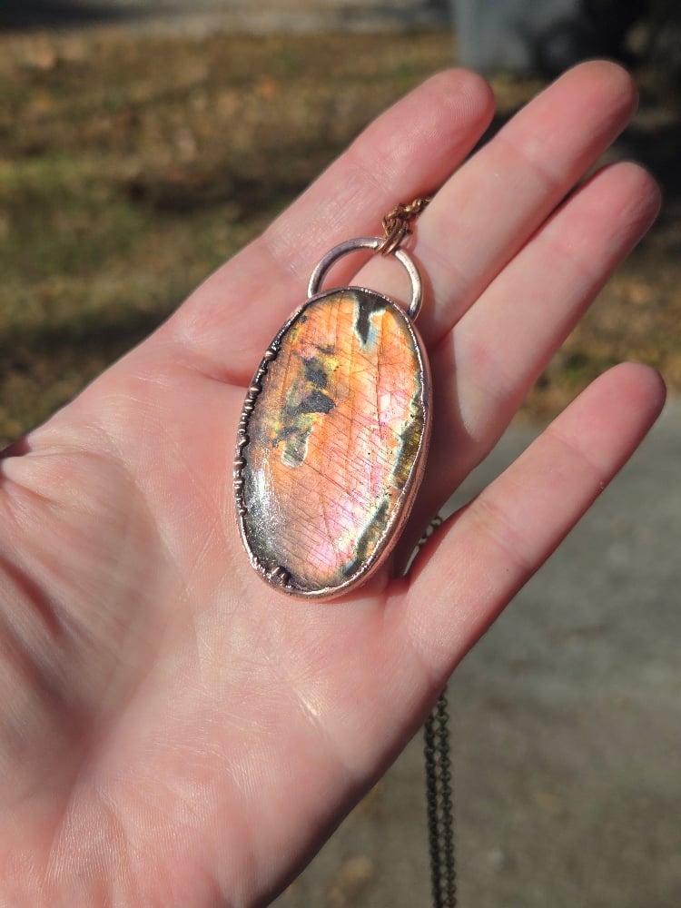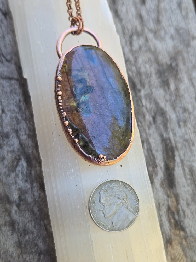 Electroformed labradorite necklace. This piece comes on an 18-inch copper chain. Please leave me a note at checkout if you would like a different length. Thanks
