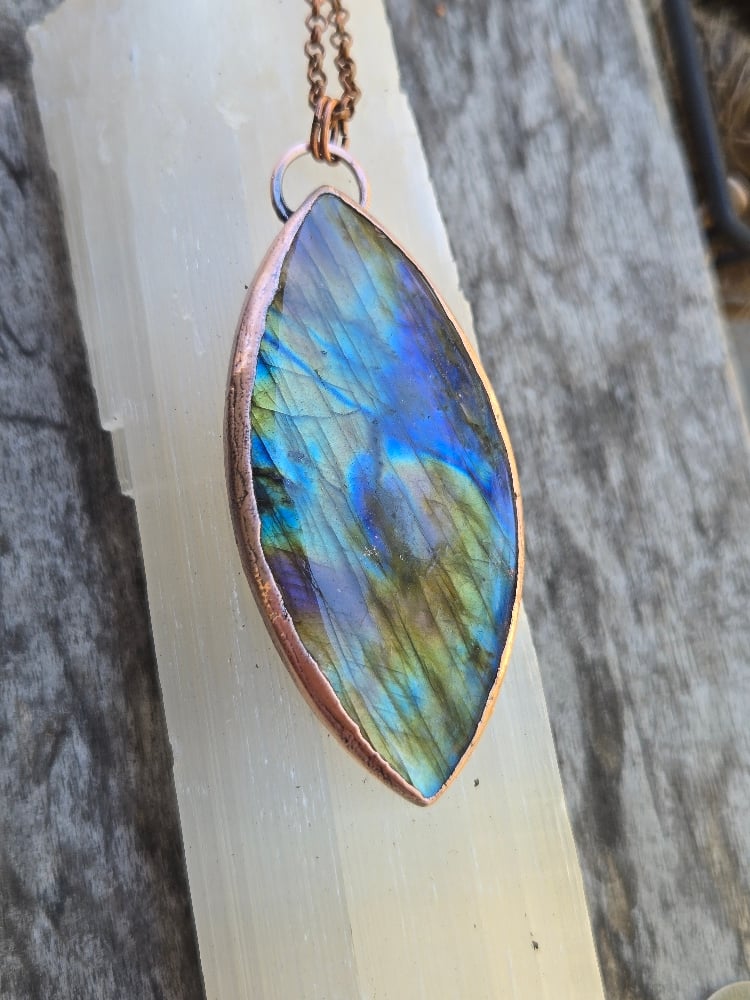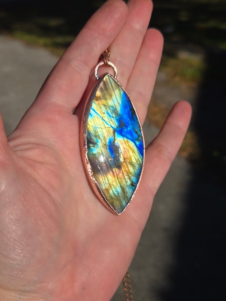 Electroformed labradorite necklace. This piece comes on an 18-inch copper chain. Please leave me a note at checkout if you would like a different length. Thanks