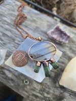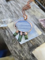 Electroformed Montana agate and indicolite tourmaline necklace. This piece comes on an 18-inch copper chain. Please leave me a note at checkout if you would like a different length. Thanks