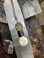 Electroformed Smokey quartz and black tourmaline necklace. This piece comes on an 18-inch copper chain. Please leave me a note at checkout if you would like a different length. Thanks