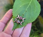 Electroformed Triple Moon rhodocrosite stud earrings. These earrings have surgical steel posts. Please contact me with any questions