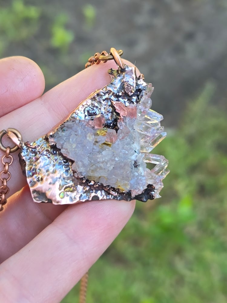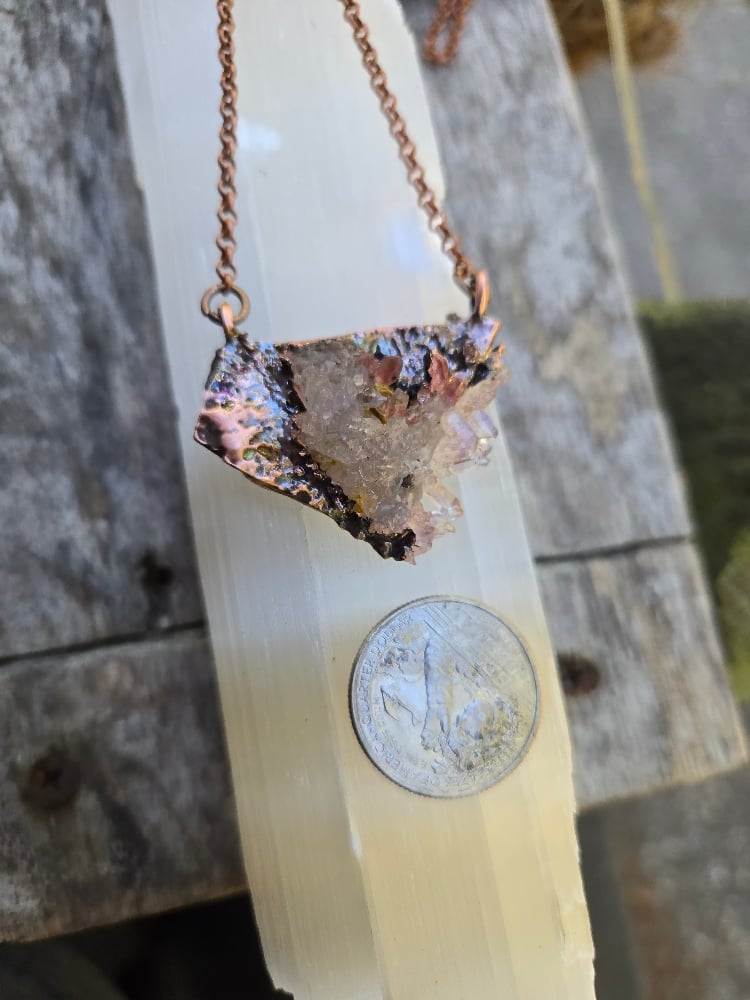 Electroformed vera cruz amethyst raw specimen necklace. This piece comes on an 18-inch copper chain. Please leave me a note at checkout if you would like a different length. Thanks