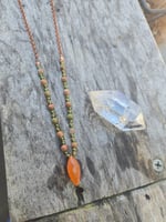 Unakite and Carnelian knotted necklace. It's knotted on light orange cord and is 18 inches long. I can make it longer or shorter. Please leave me a note at check out to let me know what length you would like.